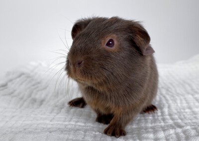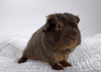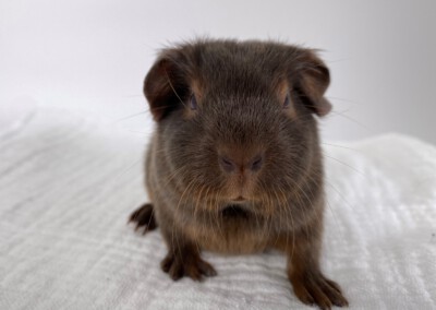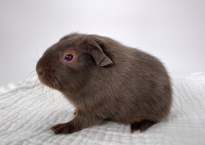 Der kleine Fraser wurde bei uns am 10.10.2020 geboren (F Wurf 2020) und wuchs die ersten Wochen mit seiner Mutter Antara und den Geschwistern in einer gemischten Gruppe auf. Am 09.11.2020 wurdeFraser mit 354g kastriert. Er lebt momentan in einer gemischten Bockgruppe. Fraser darf ab Ende November ausziehen – aufgrund der Außentemperaturen bis zum Frühjahr erstmal nur in Innenhaltung.